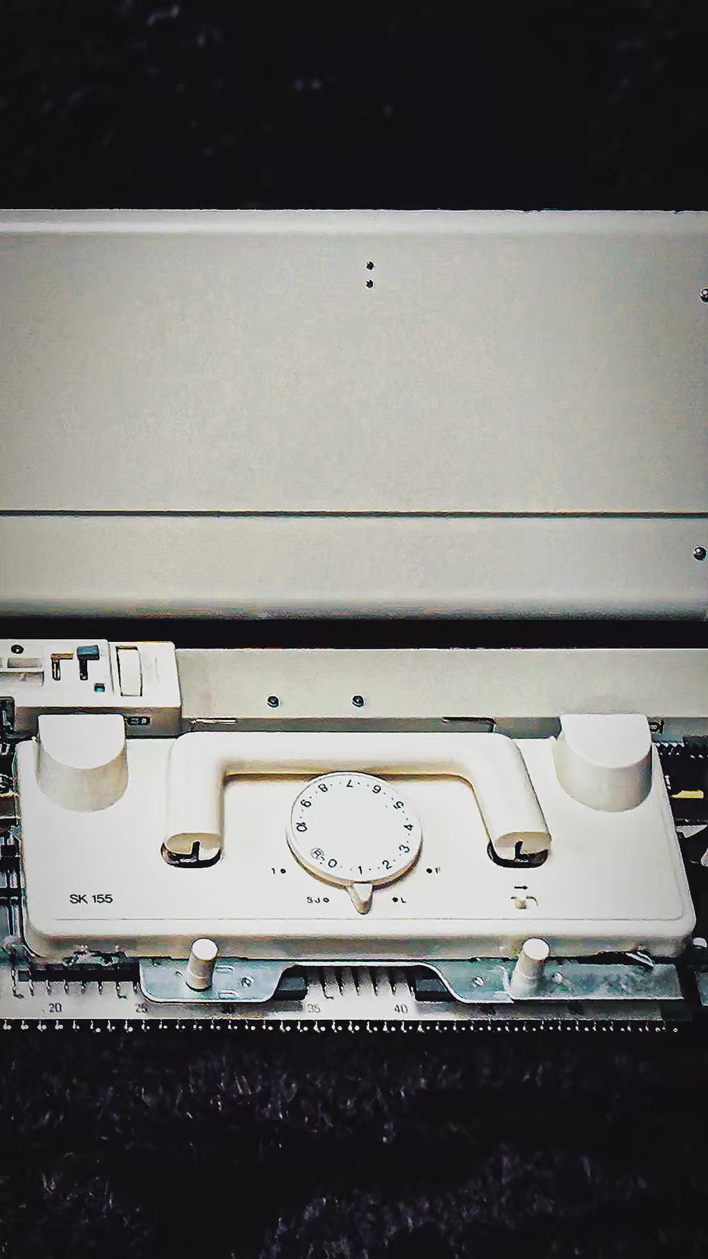 Designed specifically for thicker yarns, the SK155 handles Aran, Chunky, and Mohair yarns with ease. It features a 12-stitch punchcard mechanism that automatically selects needles for patterning, making it perfect for creating cozy winter knitwear.